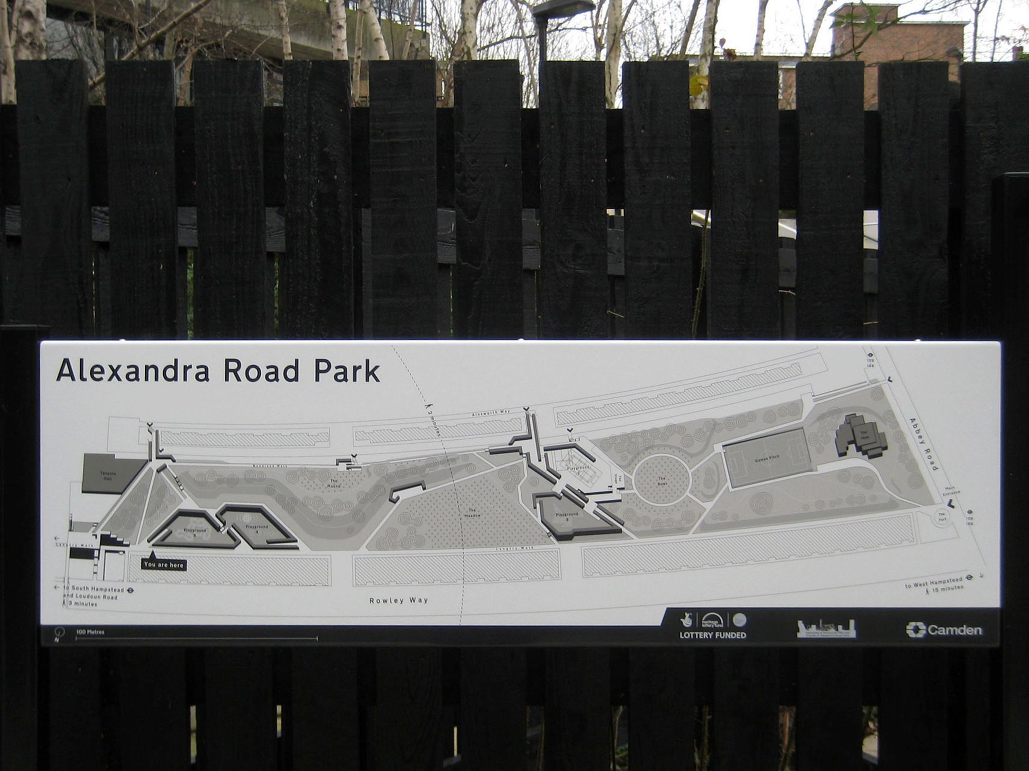 2015 wurden wir von einem Konsortium aus der Alexandra Road Residents Association, den Landschaftsarchitekten J&L Gibbons und der Stadt Camden beauftragt, ein Leitsystem für den neu angelegten Alexandra Road Park zu gestalten. Der Park, ein Meisterwerk der modernen Architektur, liegt im Zentrum des bekannetn Alexandra Road Estate.