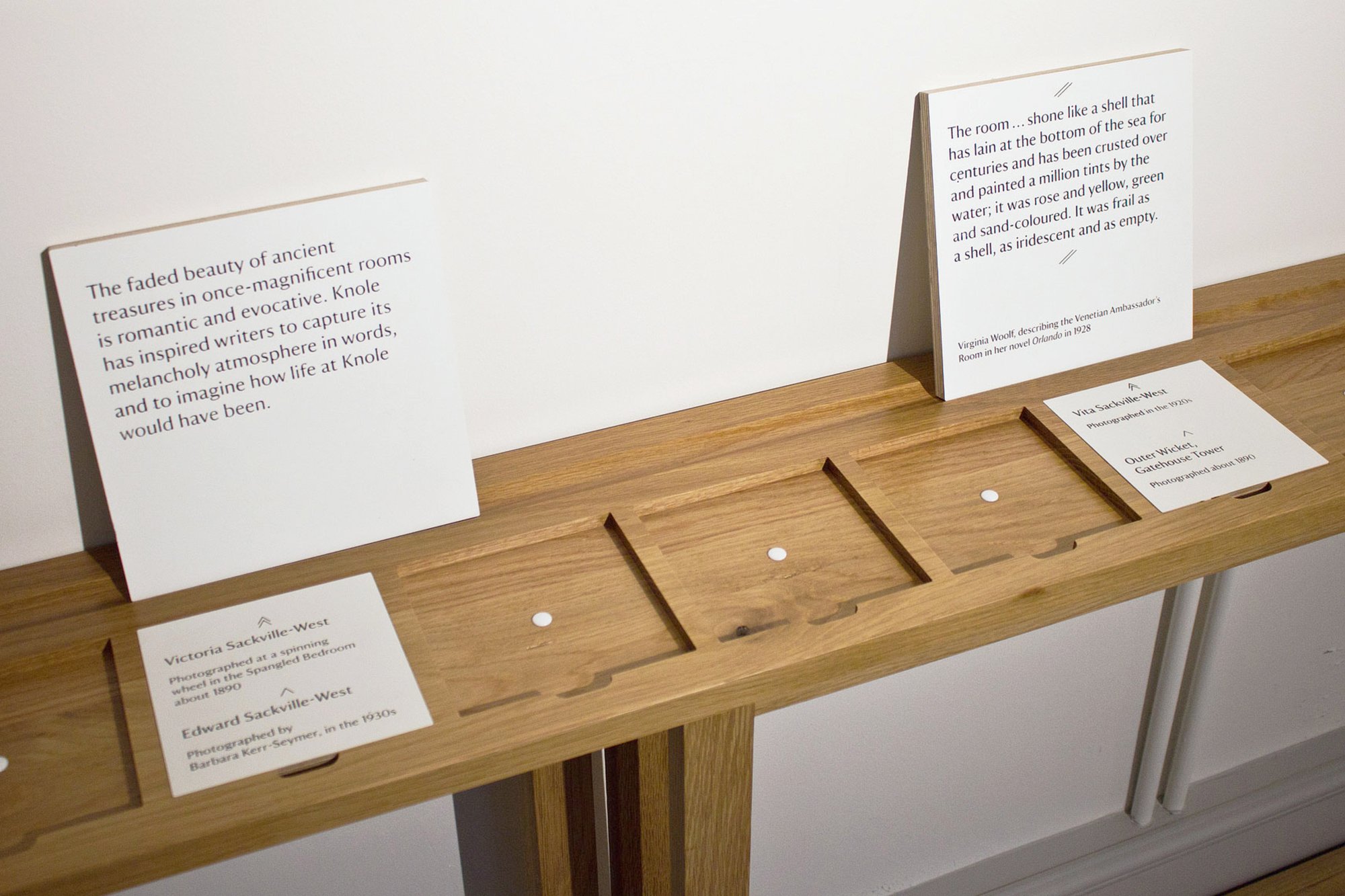 Zu Beginn eines Fünf-Jahres-Programms für die Umgestaltung der öffentlichen Bereiche von Knole House, in Sevenoaks, konnten wir dessen riesiges Archiv erkunden. Als Teil eines Teams, das sich aus der Ausstellungsabteilung des National Trust, dem Konservierungsteam von Knole House sowie den Architekten von muf architecture/art zusammensetzt, haben wir ein Designkonzept für das neue Besucherzentrum entwickelt, welches den Besucher mit einer Auswahl der kunsthistorischen Schätze in Berührung bringt, die bei einer Erkundung des Hauses gefunden werden können. Eine Vielzahl von Objekten, vom Gästebuch über Gemälde und Zeichnungen bis hin zu kleinen Dias und Faksimiles von Drucken, erzählen die Geschichte von Knole und seinen Bewohnern vom 15. Jahrhundert bis zur Übergabe von Teilbereichen an die Öffentlichkeit im Jahr 1946.