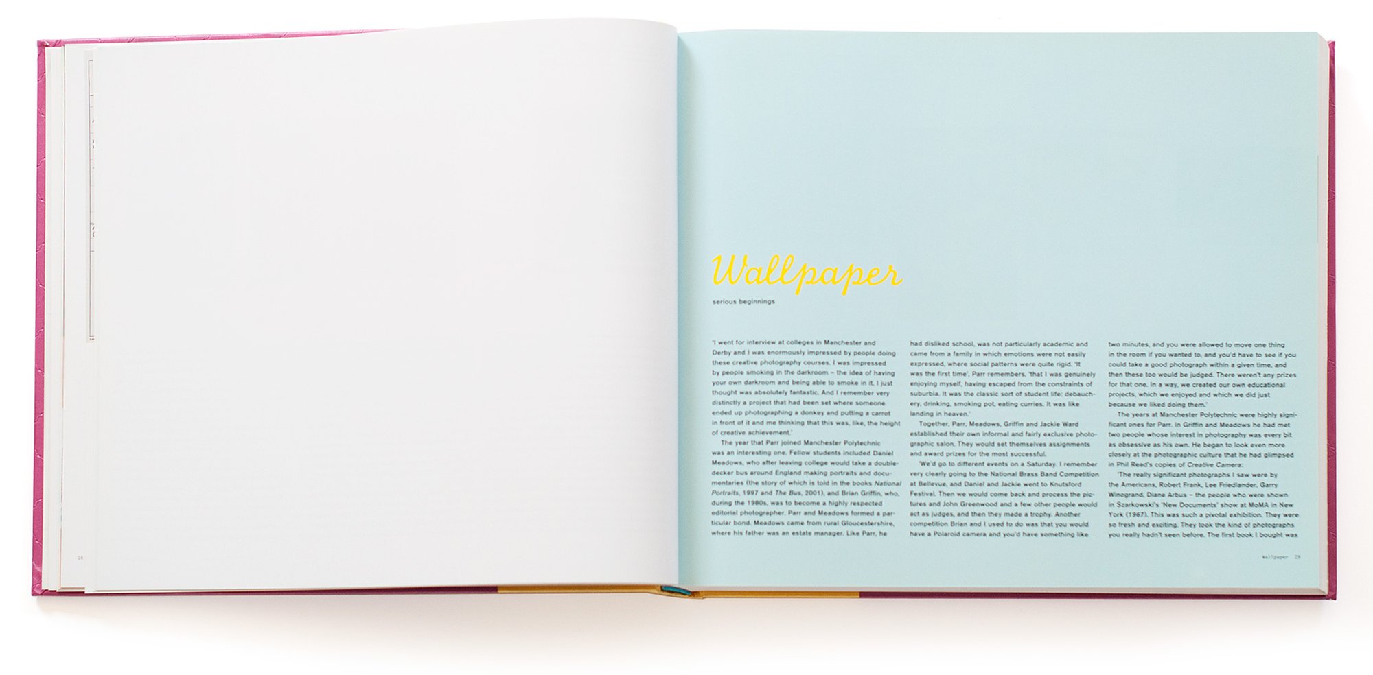 Ungefähr 12 Jahre nachdem Axel an der ersten Ausgabe von Phaidons großer Retrospektive des Werks von Martin Parr gearbeitet hat, wurden wir gefragt, ob wir die zweite Ausgabe gestalten wollten, die drei neue Kapitel mit aktuellen Arbeiten enthält. Wir fühlten uns geehrt und hatten so das Vergnügen, Martin’s neuste Arbeiten zu sichten und unseren Entwurf von 2002 leicht zu aktualisieren.