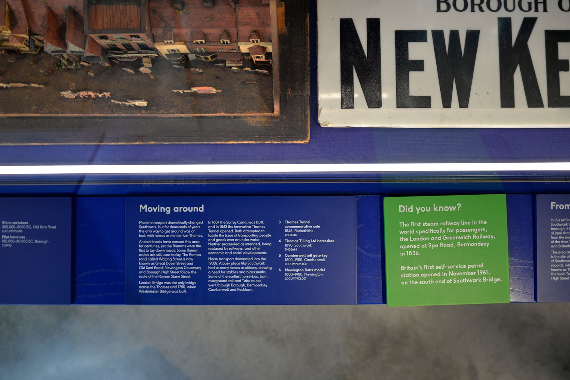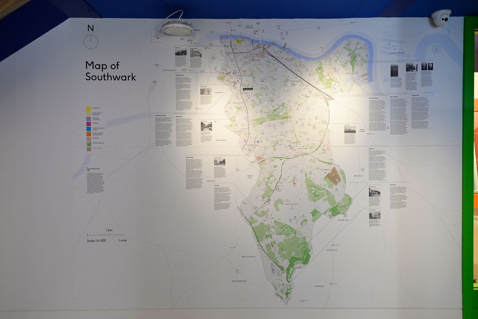 Die in der zweiten Phase des Projekts entwickelte Ausstellung Story of Southwark führt dieses System weiter und übersetzt es in ein gegenüber dem übrigen Raum farblich abgesetztes Schema, mit einer Galeriewand in Petersburger Hängung sowie einer detailierten Karte des Stadtteils.