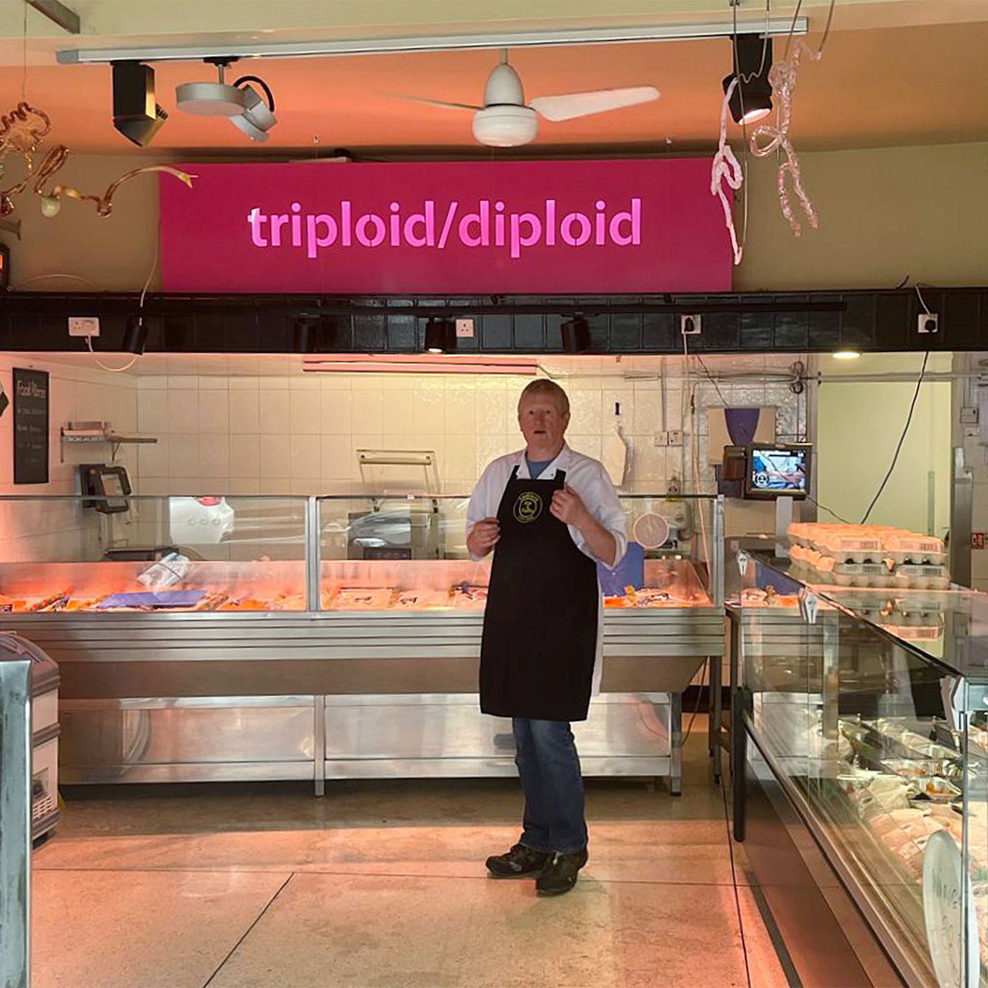 Für die 41. EVA Internationale Biennale, die an verschiedenen Orten der Stadt Limerick ausgetragen wurde, zeigte der Künstler Ciarán Ó Dochartaigh Arbeiten in einem Fischgeschäft. Als Teil unserer langjärigen Zusammenarbeit mit Ciarán trugen wir technische Zeichnungen um das Thema adaptiver parasitärer und symbiotscher Beziehungen zu der Ausstellung bei. Die Zeichnungen wurden auf transparente Folie gedruckt und frei innerhalb des Geschäfts positioniert.