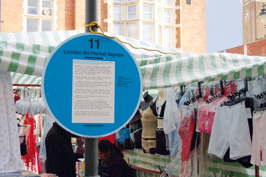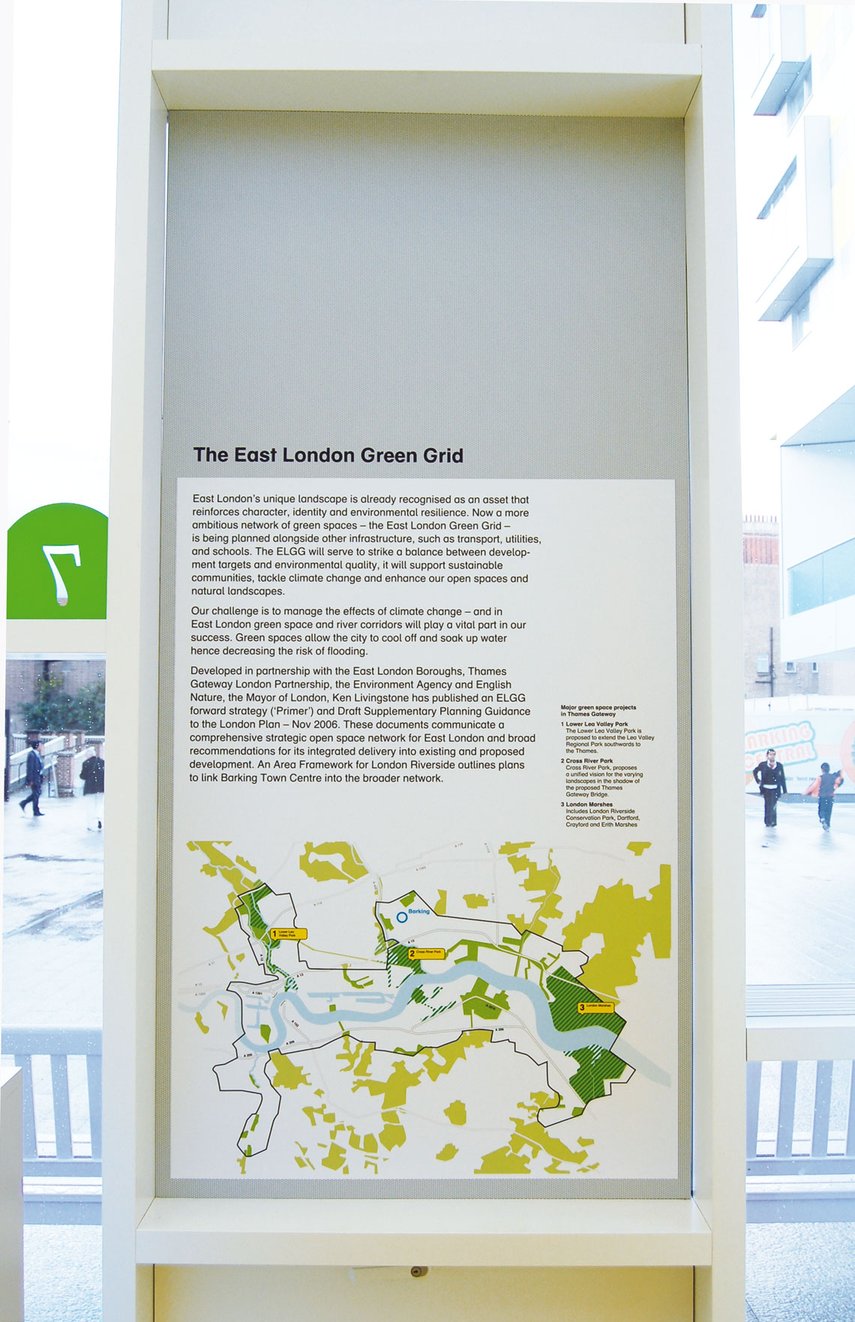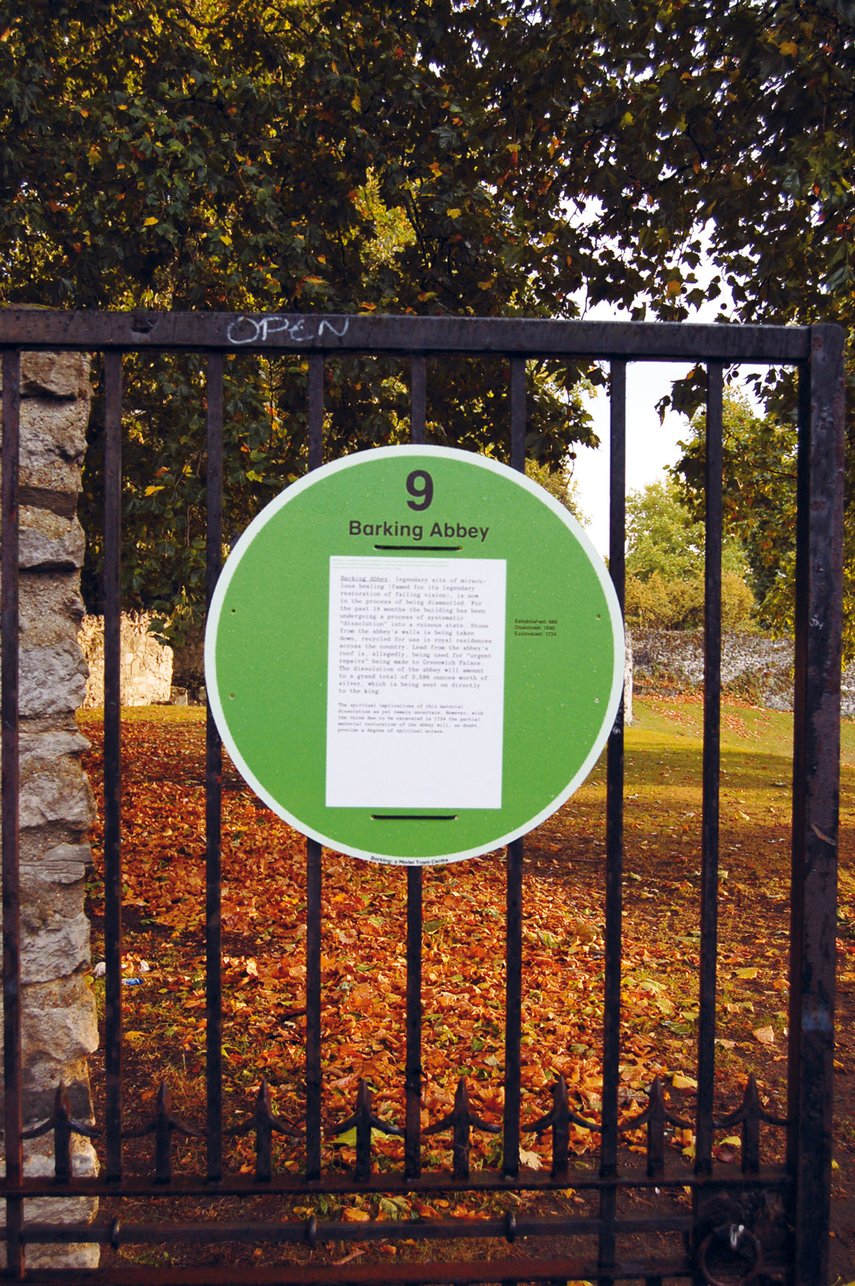 Den Besuchern der Ausstellung wurde eine ‘touristische Karte’ von Barking ausgehändigt, um sie auf dem Weg zu begleiten. Jeder Standort wurde mit einem temporären Schild gekennzeichnet.