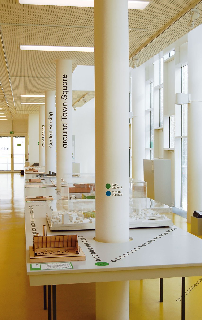 In Barking wird derzeit das gesamte Stadtzentrum nach einem Masterplan des Bauträgers Redrow Regeneration neu gestaltet. Diese Ausstellung wurde von Design for London in Zusammenarbeit mit muf architecture/art und dem Architects’ Journal als Informationsforum für die Anwohner von Barking konzipiert. Alle aktuellen Architekturprojekte in und um Barking wurden als Modelle ausgestellt, die von über 20 Architekturbüros ausgeliehen wurden. Wir haben einen konzeptionellen ‘Besichtigungspfad’ durch Barking geschaffen, der an den Neubauten vorbeiführt, aber auch einige der historischen, teilweise verfallenen Stätten von Barking miteinschließt, um die Wertschätzung von Barking zu erhalten.
