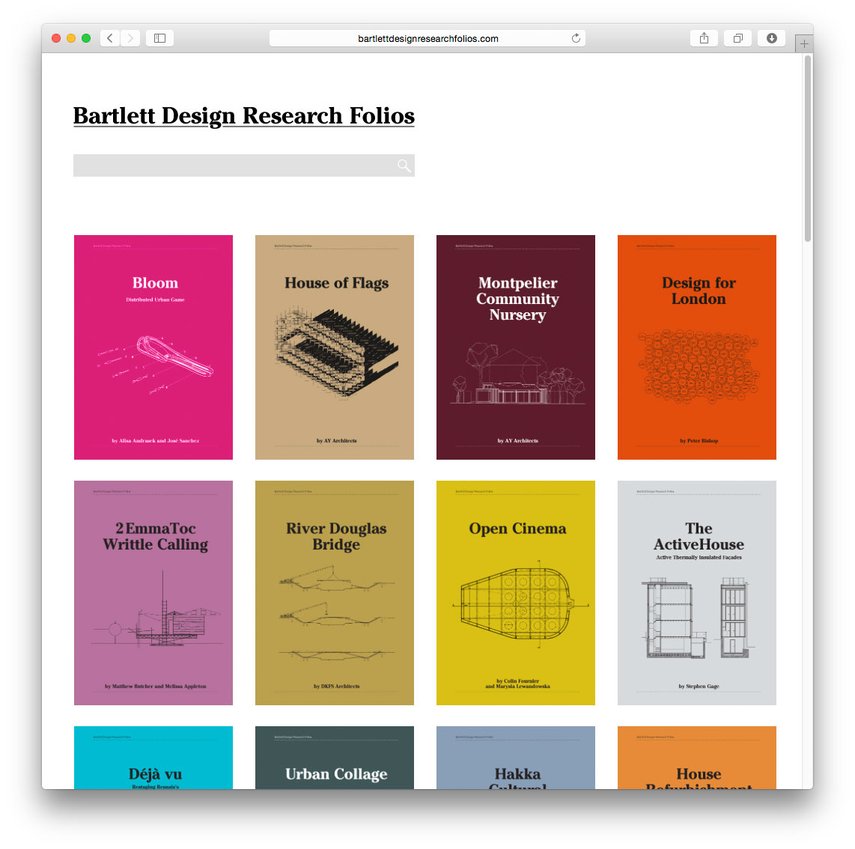 Nachdem die Projekte eingereicht wurden, wurden sie auf einer eigens hierfür entworfenen Open Access Internet Platform online gestellt, um so der Forschungs-Community freien Zugang zu den Publikation zu ermöglichen. Die radikale Einfachheit dieser Platform besticht durch eine Suchleiste als einziges Navigationselement.
