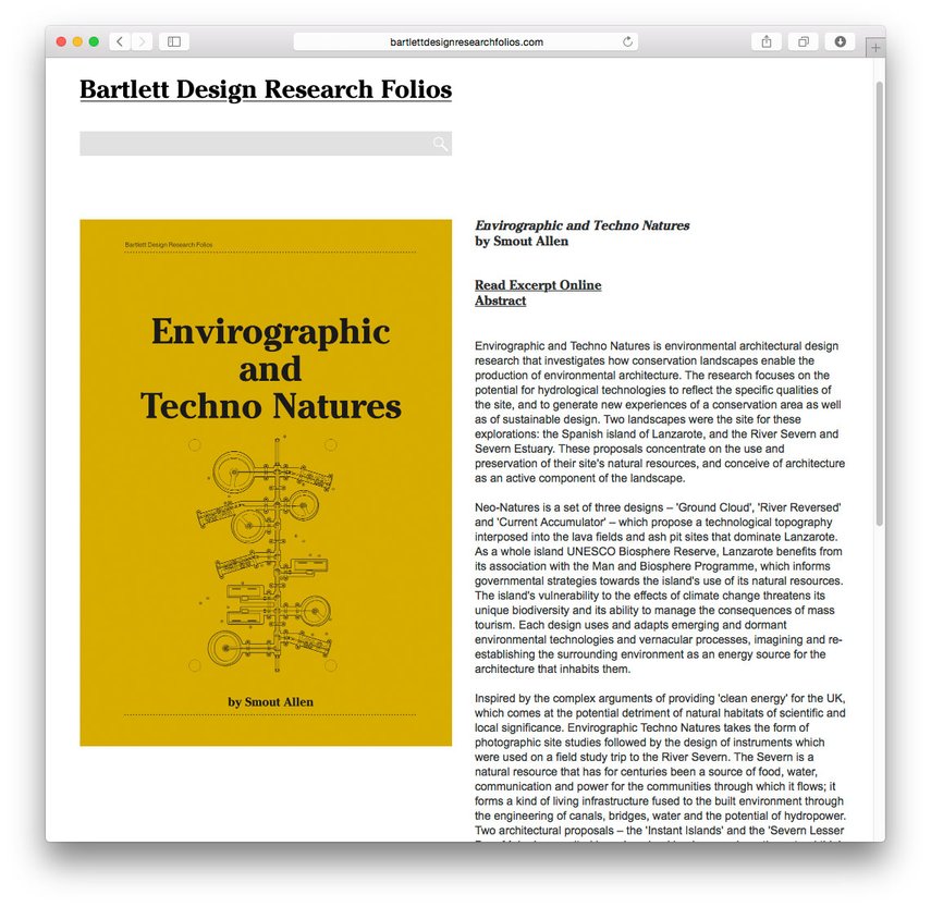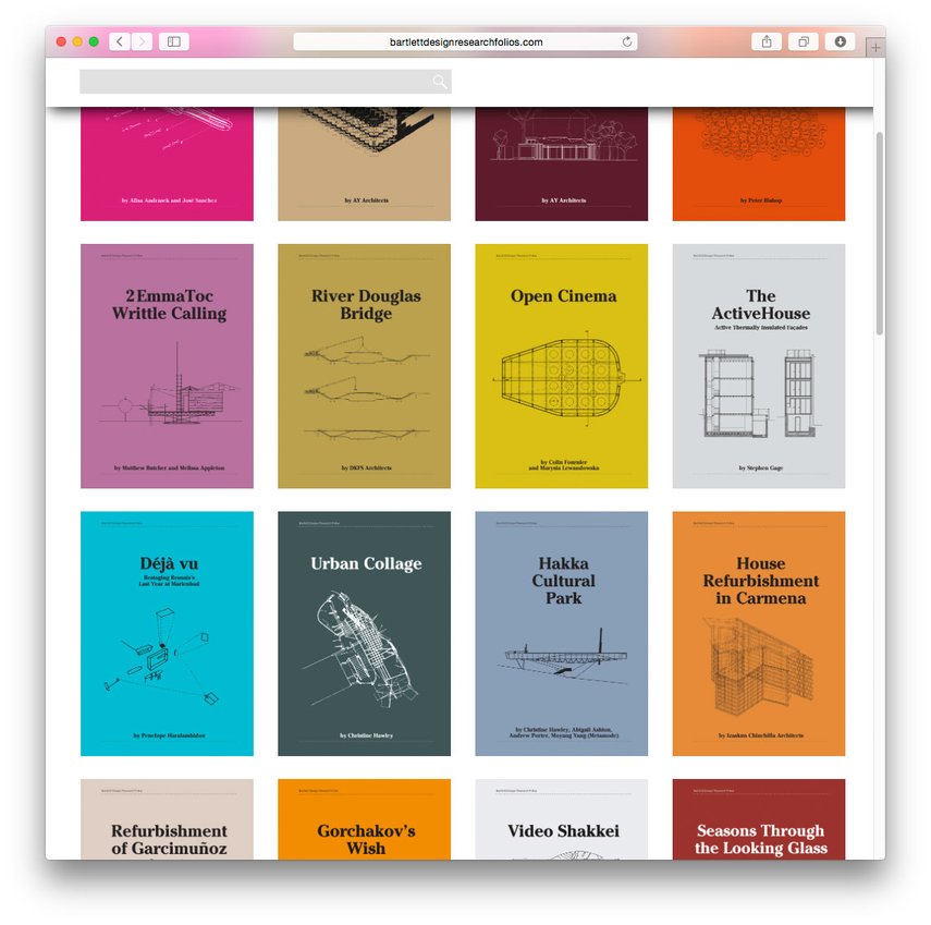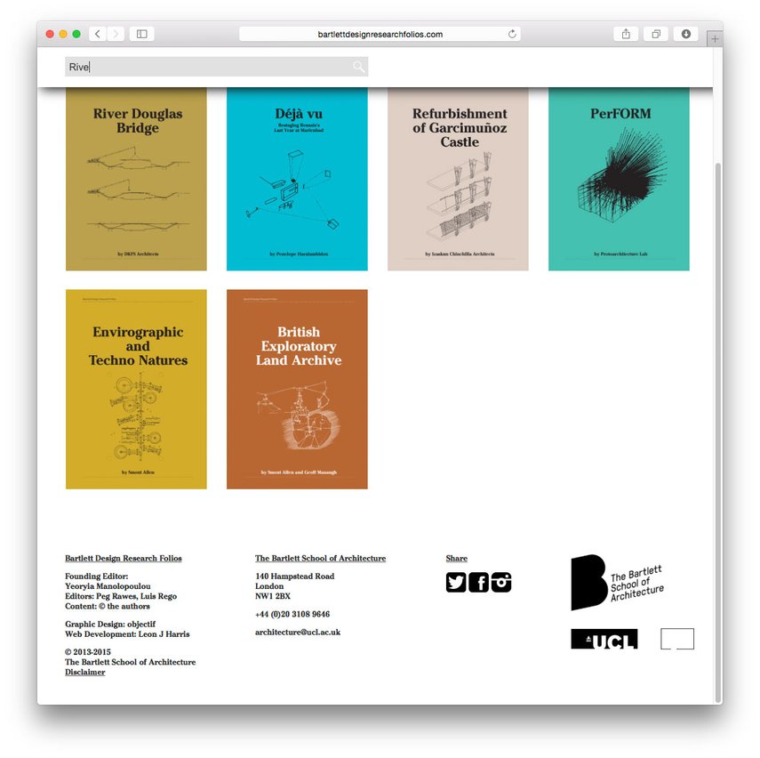 2014 wurden wir mit der Gestaltung und Satz des Antrags der Bartlett School of Architecture für das britische Research Excellence Framework beauftragt. Im Lauf des Sommers 2014 gestalteten wir eine Reihe von 38 Publikationen, von welchen jede Einzelne ein an der Bartlett realisiertes architektonisches Forschungsprojekt vorstellt.