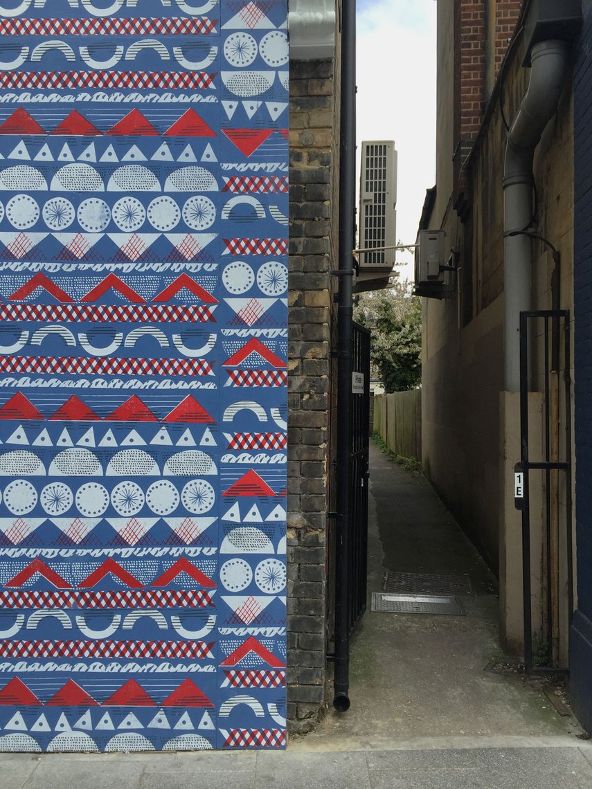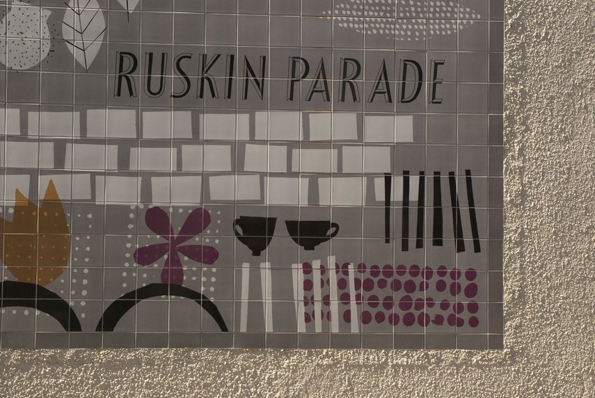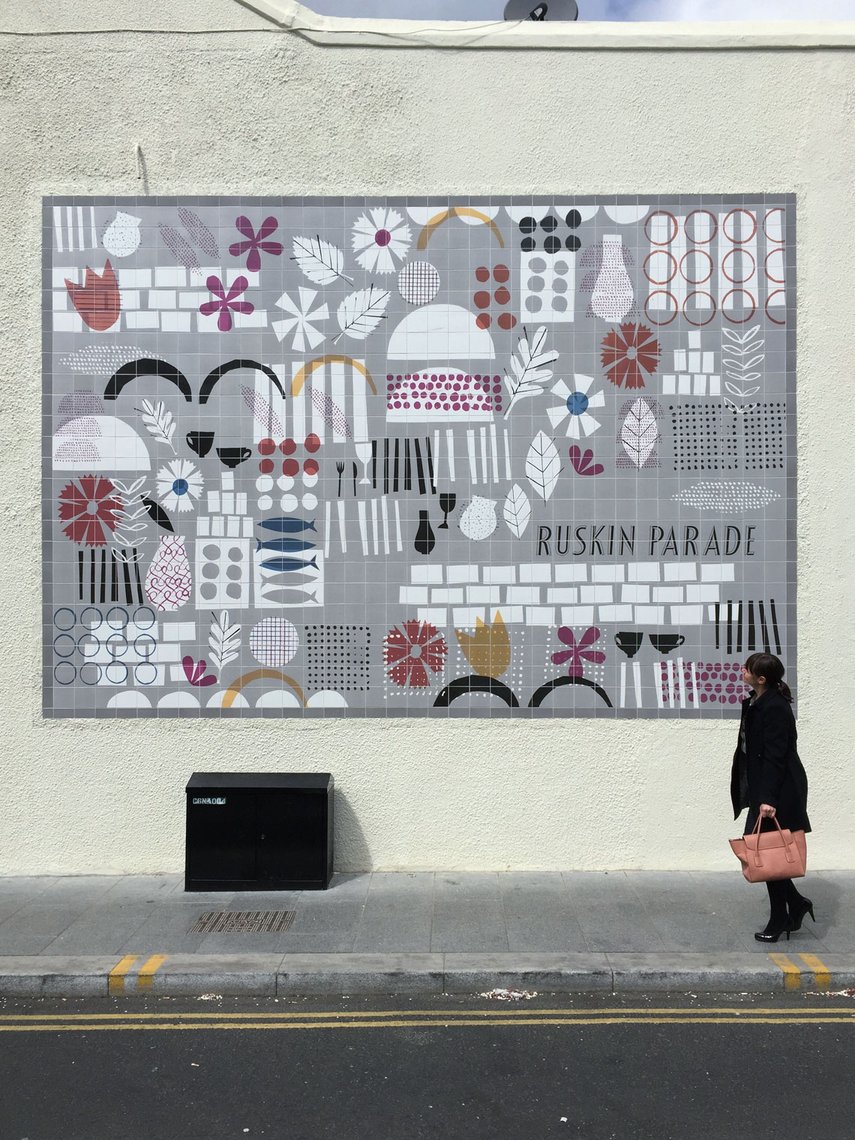 Neben einer Reihe von Ladenfronten haben wir eine visuelle Identität für das Gebiet geschaffen, die aus Mustern besteht welche aus den Themen ‘Gastronomie’ und ‘dörfliches Leben’ hervorgingen. Die Muster wurden von Jenny Bowers entworfen und von Jugendlichen aus der Region unter der Aufsicht von Lucy Bainbridge im Siebdruckverfahren auf Plakatwände und Fliesen gedruckt.