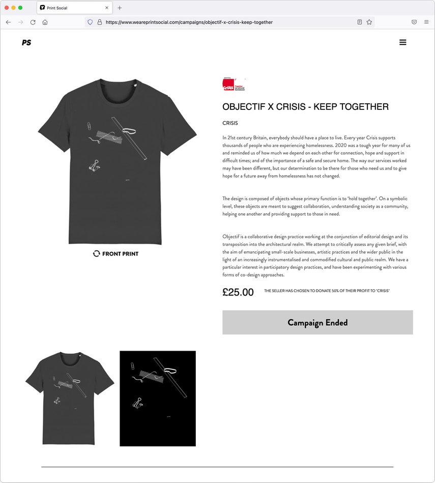 Während der Corona-Lockdowns wurden wir von Print Social eingeladen eine Illustration für ein T-Shirt zu entwerfen, was unter der Kampagne ‘Hold Together During the Crisis’ verkauft wurde. 50% des Einkommens wurde an Crisis übergeben, einer britischen Organisation die sich für Obdachluse einsetzt.