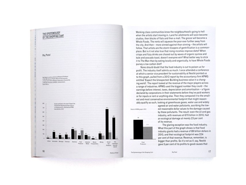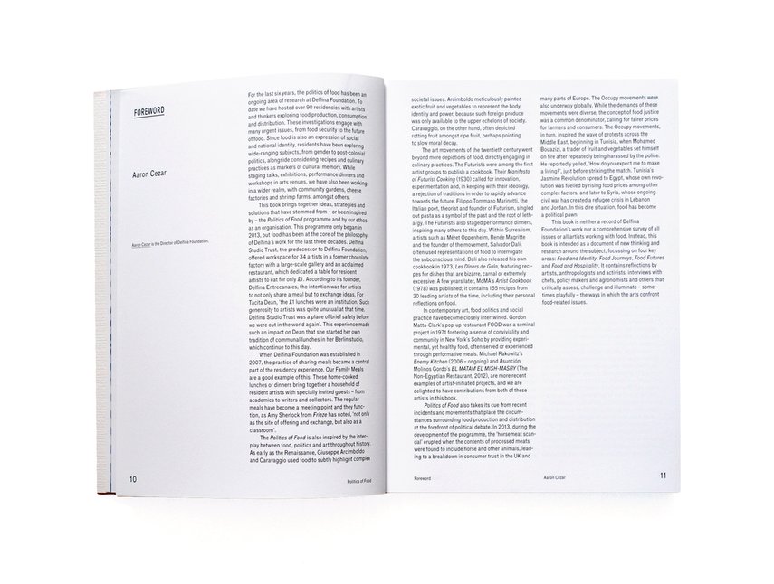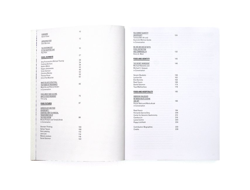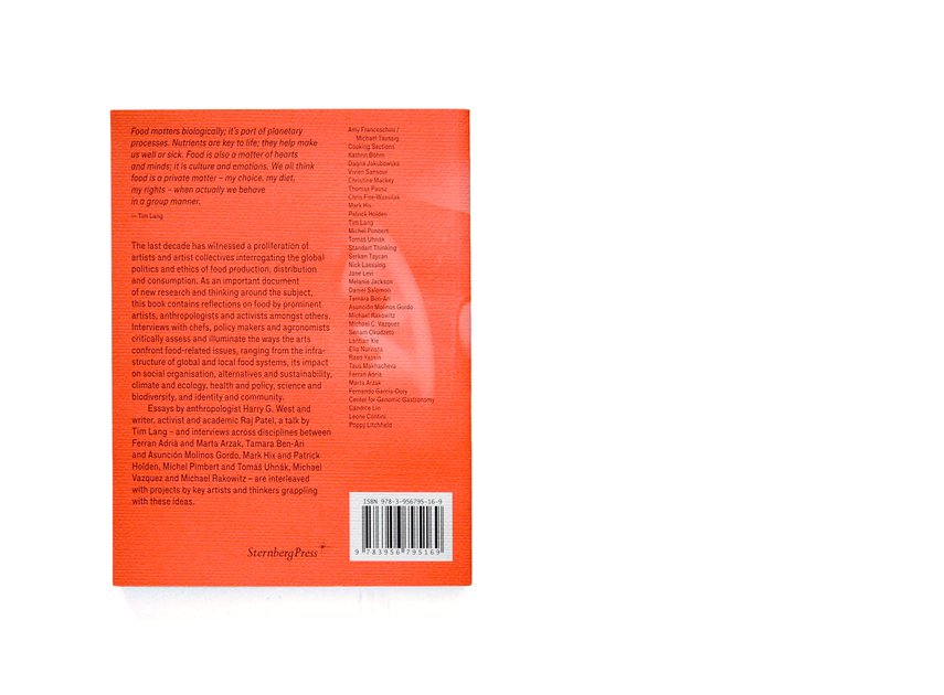 Ein von Sternberg Press herausgegebener Band, der eine Auswahl an Essays und Kunstprojekten rund um das Thema Essen und dessen sozio-kulturellen Auswirkungen und Bedeutungen beinhaltet. Die Buchgestaltung versucht eine hybride Identität zu schaffen, als Treffpunkt der Sphären von radikaler Theorie, Kunst und dem klassischen Kochbuch.