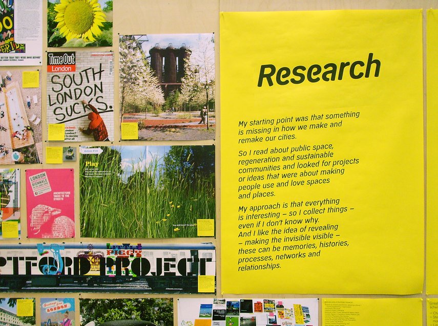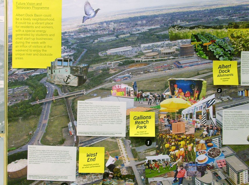 Im Rahmen des Architect’s Journal Urban Design Scholarship verbrachte Alicia Pivaro ein Jahr bei Design for London und untersuchte Möglichkeiten zur Aufwertung des Gebiets um das Albert Dock Basin in East London. Um die Untersuchungsergebnisse zu zeigen, konzipierten wir eine Ausstellungswand, die mit leuchtenden Farben und informeller Typografie auf den derzeit heruntergekommenen Zustand des Albert Docks reagieren sollte. Wir entschieden uns dafür, Alicias ausgeschnittene Notizen direkt auf die Ausstellungswand zu übertragen, um eine persönliche und spielerische Plattform zu schaffen, die die zahlreichen Ideen widerspiegelt, die sich aus ihrer Recherche ergeben haben.