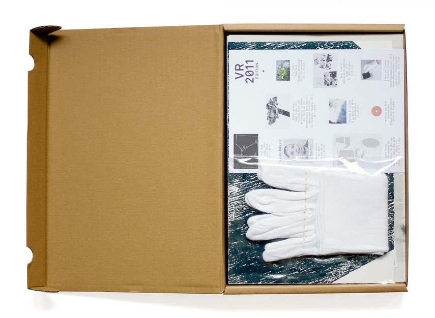 1 x Fotografischer Print, 2 x Poster A3, 1 x Holzschnitt Fragment, 2 x Poster A2, 24 x Farbkopien, 1 x CD, 1 x Silikon-Stempel, 1 x Paar Handschuhe, 1 x Postkarte